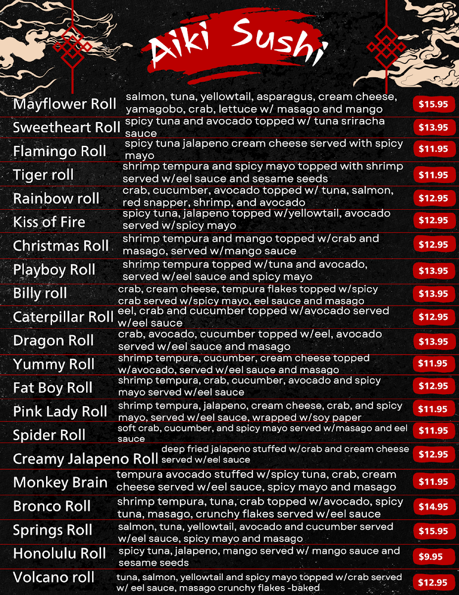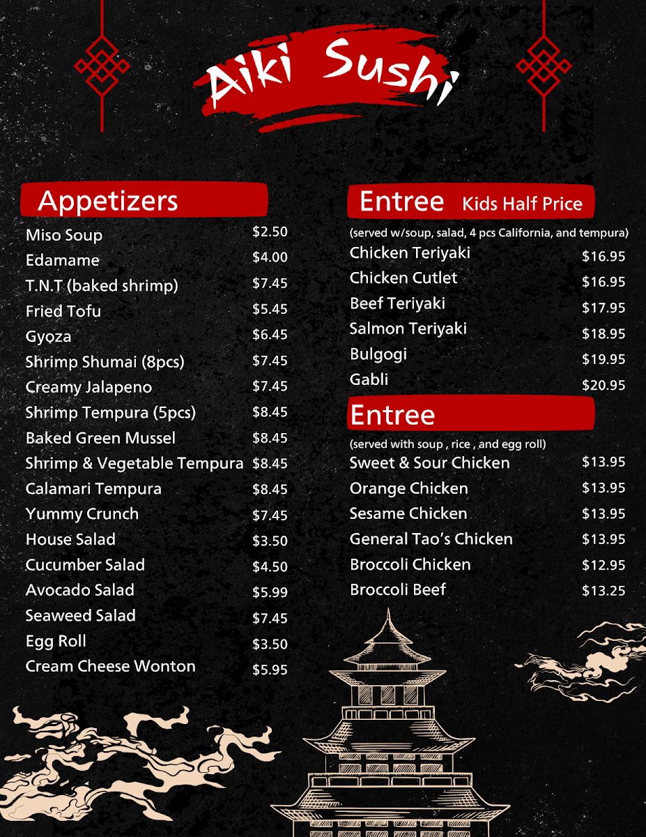Welcome to Aiki Sushi & Ramen, a hidden gem nestled in Colorado Springs, Colorado, where culinary excellence meets authentic Japanese flavors. The menu is a vibrant tapestry of fresh sushi and savory ramen, designed to delight both seasoned sushi lovers and newcomers alike.
